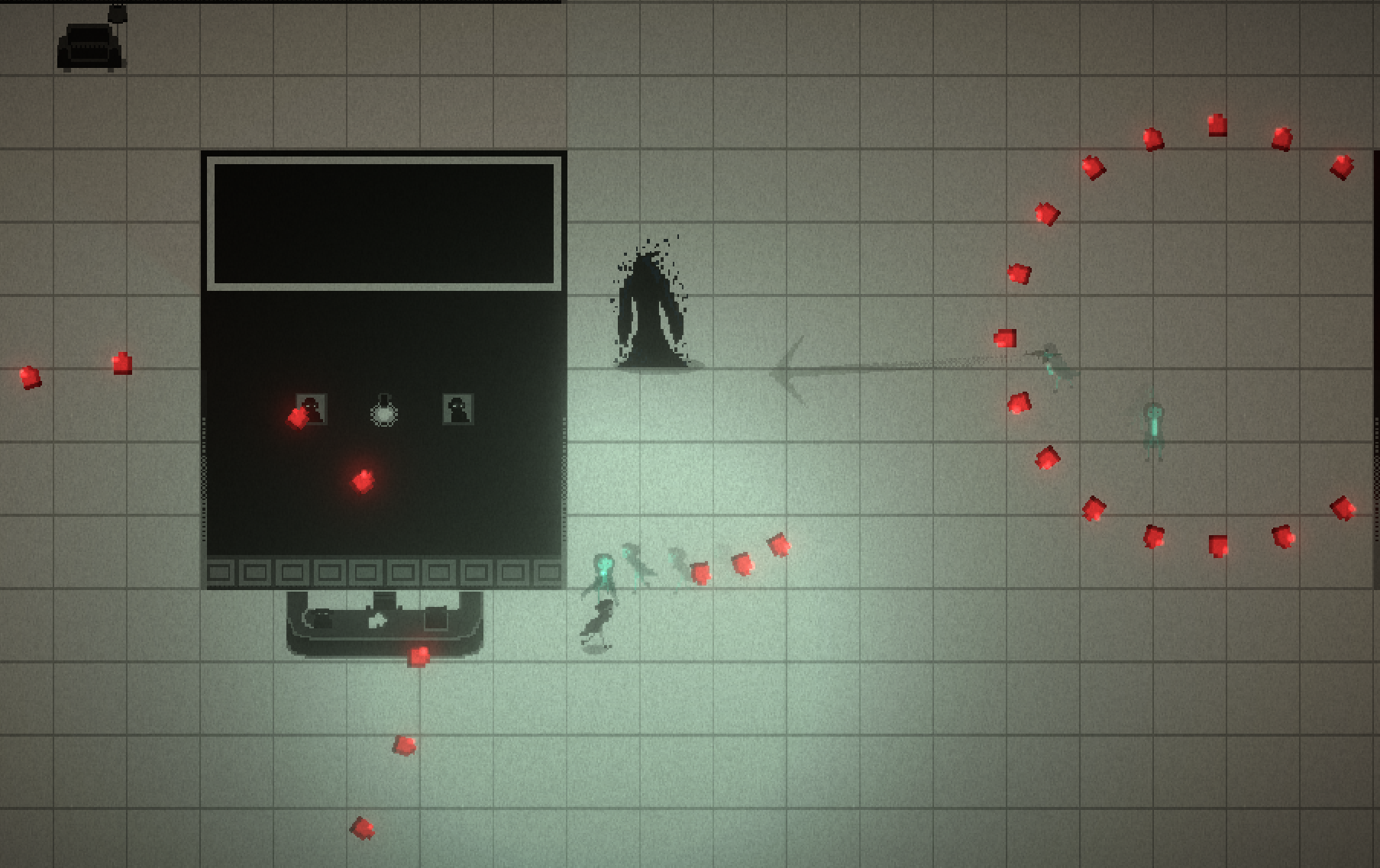 Inspired by Hyper Light Drifter, Enter the Gungeon, and Lovecraftian horror.